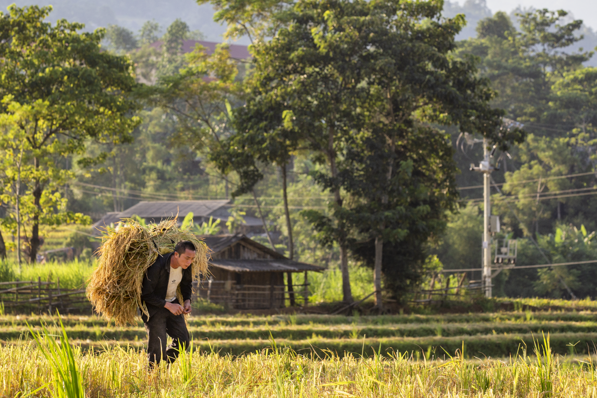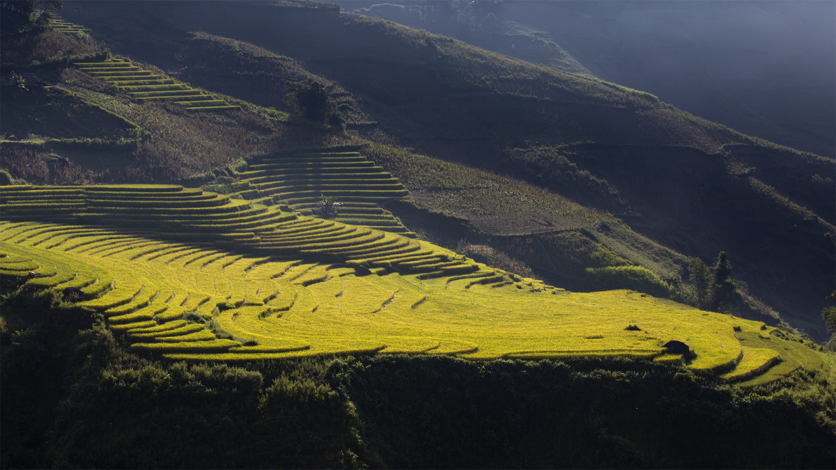 Địa hình được chia cắt mạnh mẽ với nhiều vực sâu, cùng với nghề trồng lúa đã biến nơi đây thành thung lũng của những ruộng bậc thang uốn lượn, được bao bọc bởi các ngọn núi cao hùng vĩ. Thung lũng rộng lớn bao phủ trong sắc vàng khiến những cánh đồng lúa như kéo dài bất tận.