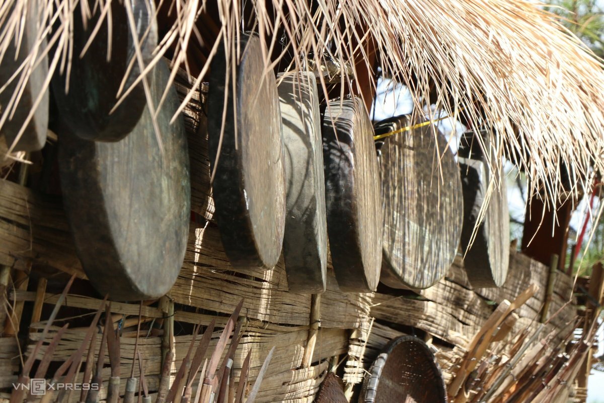 Dàn trống da trâu được trưng bày trong không gian Thiên đường Tây Nguyên. Đây là trống để người dân Tây Nguyên sử dụng trong các lễ hội, lễ nghi... truyền thống.