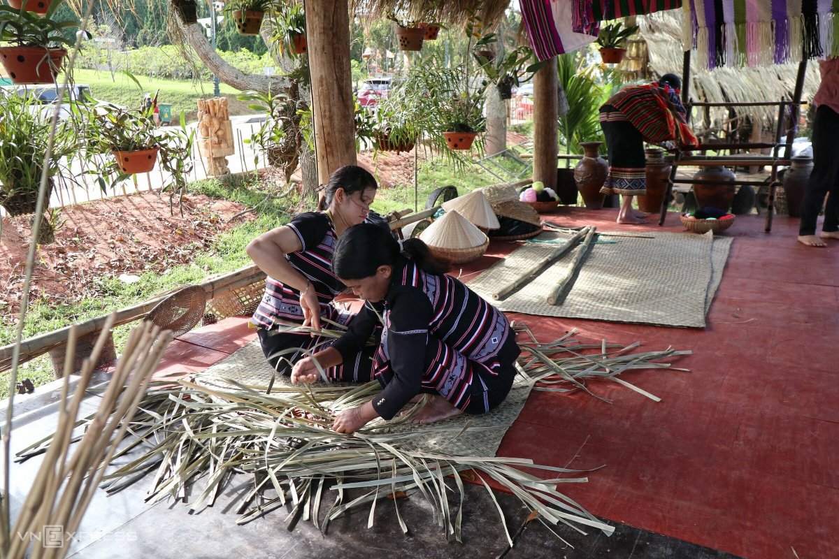 Các nghệ nhân dân tộc Ba Na dệt những tấm chiếu từ lá rừng, một nghề thủ công truyền thống có từ lâu đời vẫn được người dân lưu giữ cho đến nay.