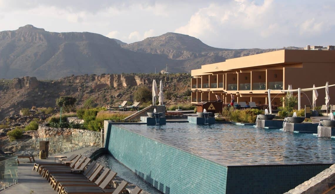 Anantara Al Jabal Al Akhdar (Oman) nằm trên đỉnh một hẻm núi ấn tượng. Khách sạn được thiết kế xen lẫn sự sang trọng và cảm giác phiêu lưu. Hồ bơi vô cực mở rộng ra hẻm núi, mang đến cho du khách tầm nhìn mê hoặc, quang cảnh ngoạn mục. Với 6 nhà hàng trong khuôn viên, du khách có thể thưởng thức nhiều món ăn khác nhau, từ món truyền thống của Oman đến ẩm thực quốc tế.
