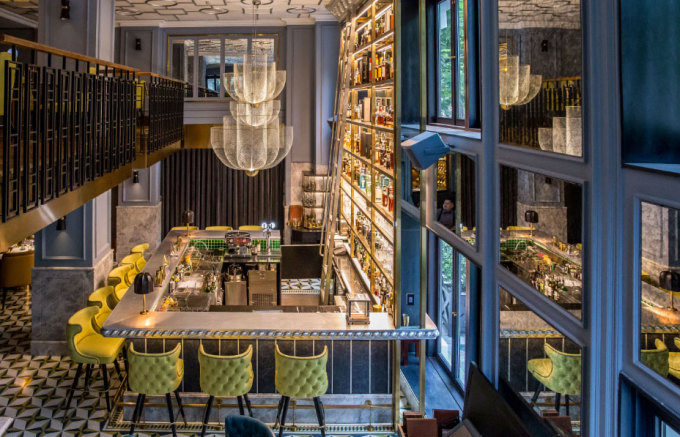 Angelina là quán bar nằm tại khách sạn Sofitel Legend Metropole Hanoi. Quán phục vụ thực đơn từ cocktail, mocktail đến bia, rượu cao cấp và các món ăn mang phong cách châu Âu như thăn bò, hàu Pháp, cá tuyết Scotland... Giá thành dao động từ 340.000 đồng môt bữa. Ảnh: Sofitel legend metropole hanoi