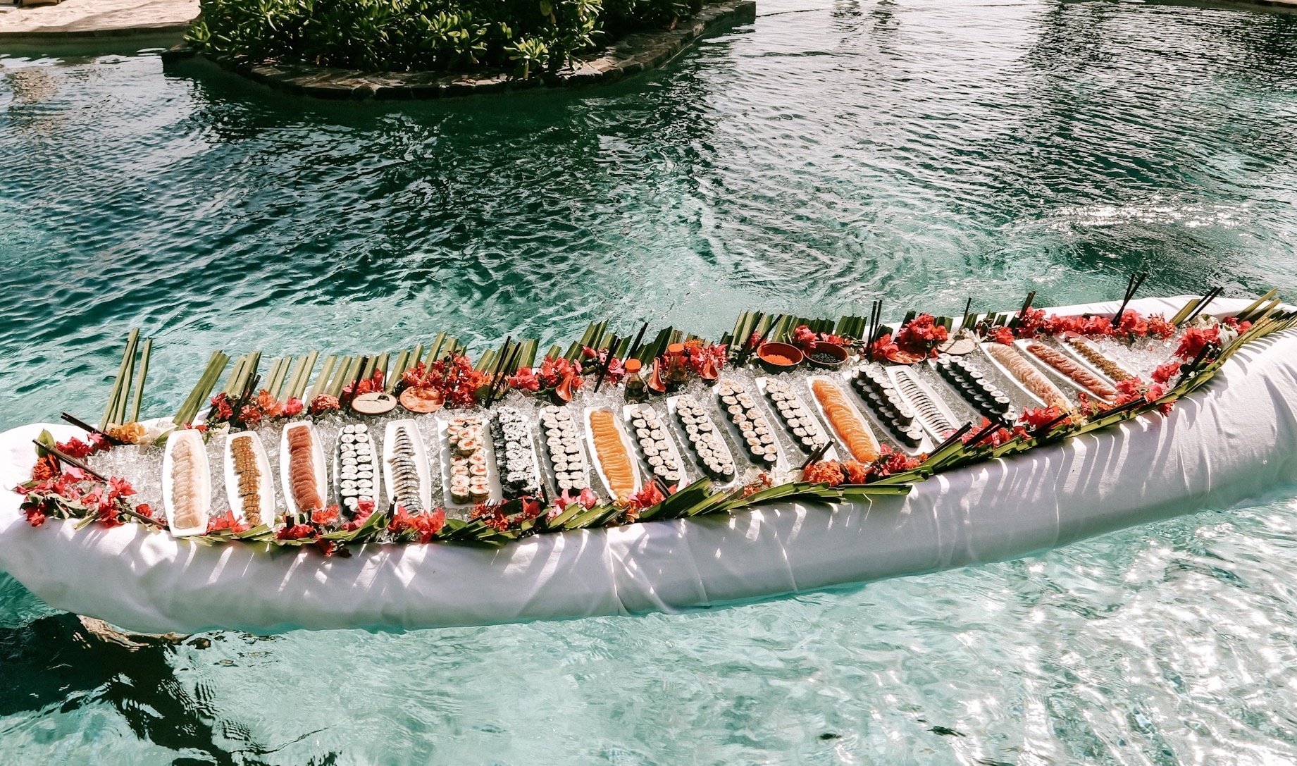 Ảnh: Keir AlexaĐảo Necker, Quần đảo Virgin thuộc Anh: Với 110.000 USD/đêm trên hòn đảo tư nhân của Richard Branson, du khách sẽ được thưởng thức bữa trưa sang trọng nổi tiếng: món sushi kayak - một đĩa sushi khổng lồ nổi trên hồ bơi.
