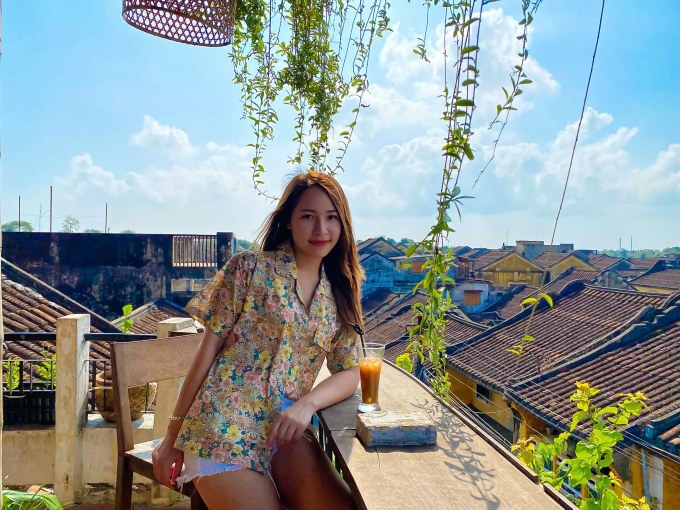 Sau đó, nữ du khách quay lại Hội An, chụp ảnh hoàng hôn ở quán cà phê trên đường Trần Phú, đi thuyền trên sông và chụp ảnh với đèn lồng.