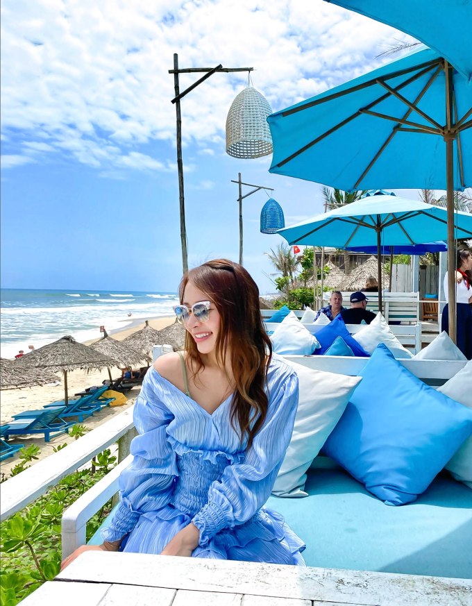 12h-16: Buổi trưa, nhóm di chuyển ra biển An Bàng cách đó hơn 4 km để nghỉ ngơi, ăn trưa. Sau đó, mọi người ghé quán Deck House (ảnh) để uống nước, giá từ 70.000 đồng một ly. Linh chọn nơi này vì quán trang trí đẹp.