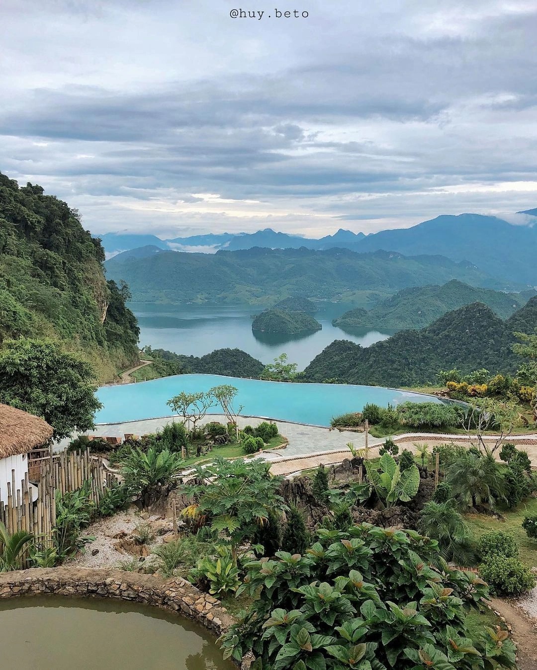Đắm mình trong bể bơi vô cực tại đây, bạn có thể phóng tầm nhìn ra thung lũng xanh và lòng hồ sông Đà, cảm nhận toàn cảnh thiên nhiên hữu tình, tráng lệ của Hòa Bình.