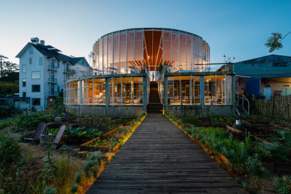 Cũng là một homestay mới đón khách từ 2020 và được giới thiệu trên Archdaily như Nắp Ấm, nhưng The LOOP có kiến trúc khác hẳn với hình dáng khối tròn kết hợp vật liệu và tông màu nâu, trắng trang nhã. Nhờ thiết kế mới mẻ mà khách ngồi nơi nào hoặc nghỉ phòng nào cũng được đón nắng và ngắm cảnh Đà Lạt.