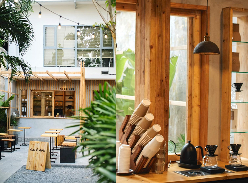 Ảnh: Cafe4ps.Bắt đầu hoạt động đầu tháng 10, tiệm cà phê mong muốn chuyển tải thông điệp sẻ chia hạnh phúc theo tôn chỉ “People to People”. Quán vận dụng những kỹ thuật xây dựng mang tính bền vững, nói không với keo, đinh hay những chất liệu “làm phiền” đến môi trường. Tiệm tận dụng tái chế và sáng tạo vật liệu mới từ đồ bỏ đi như rèm cửa nhuộm bã cà phê, đèn trần làm từ cà phê vứt đi và sữa hết hạn, những chiếc ghế ngồi tận dụng từ hộp thiếc.