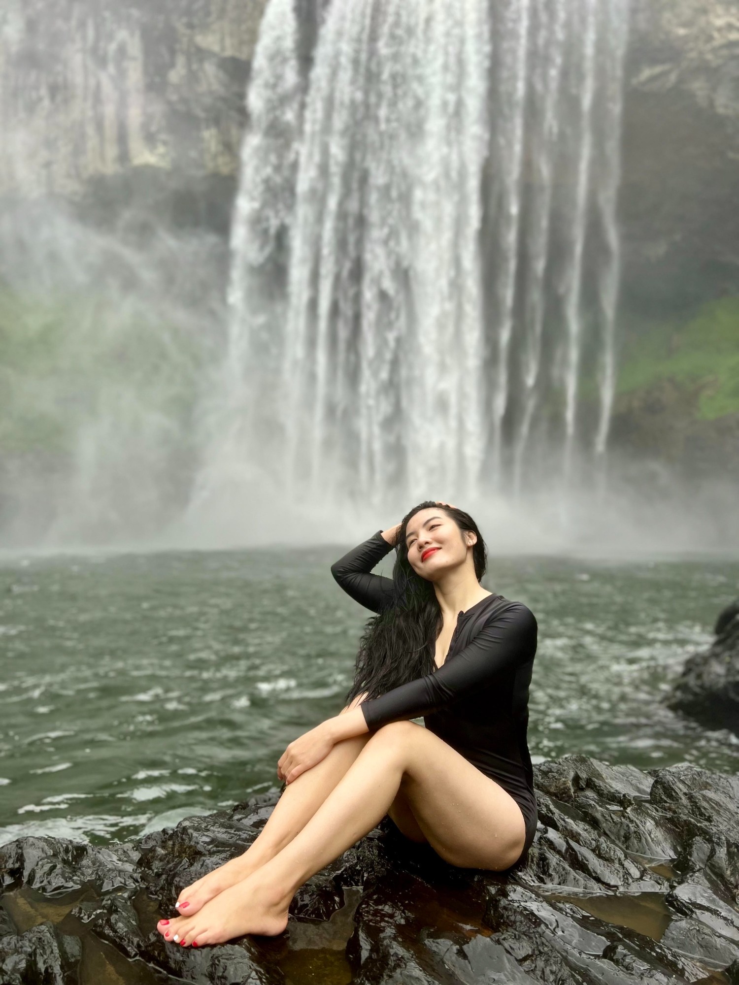 Bảo Ngân check-in tại thác Pa Sỹ (Kon Tum) đầu tháng 5 - Ảnh: Ngân Đi Lạc