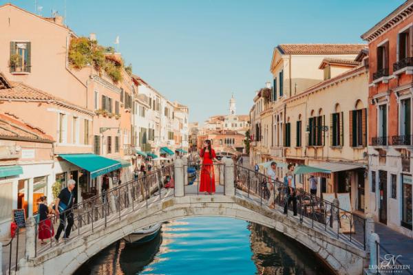 Chụp ảnh tại các con kênh là điều mà mọi du khách đều yêu thích khi đến Venice. Ảnh: Nguyen Anh LukasTham quan cầu Rialto và chợ địa phương gần đó.