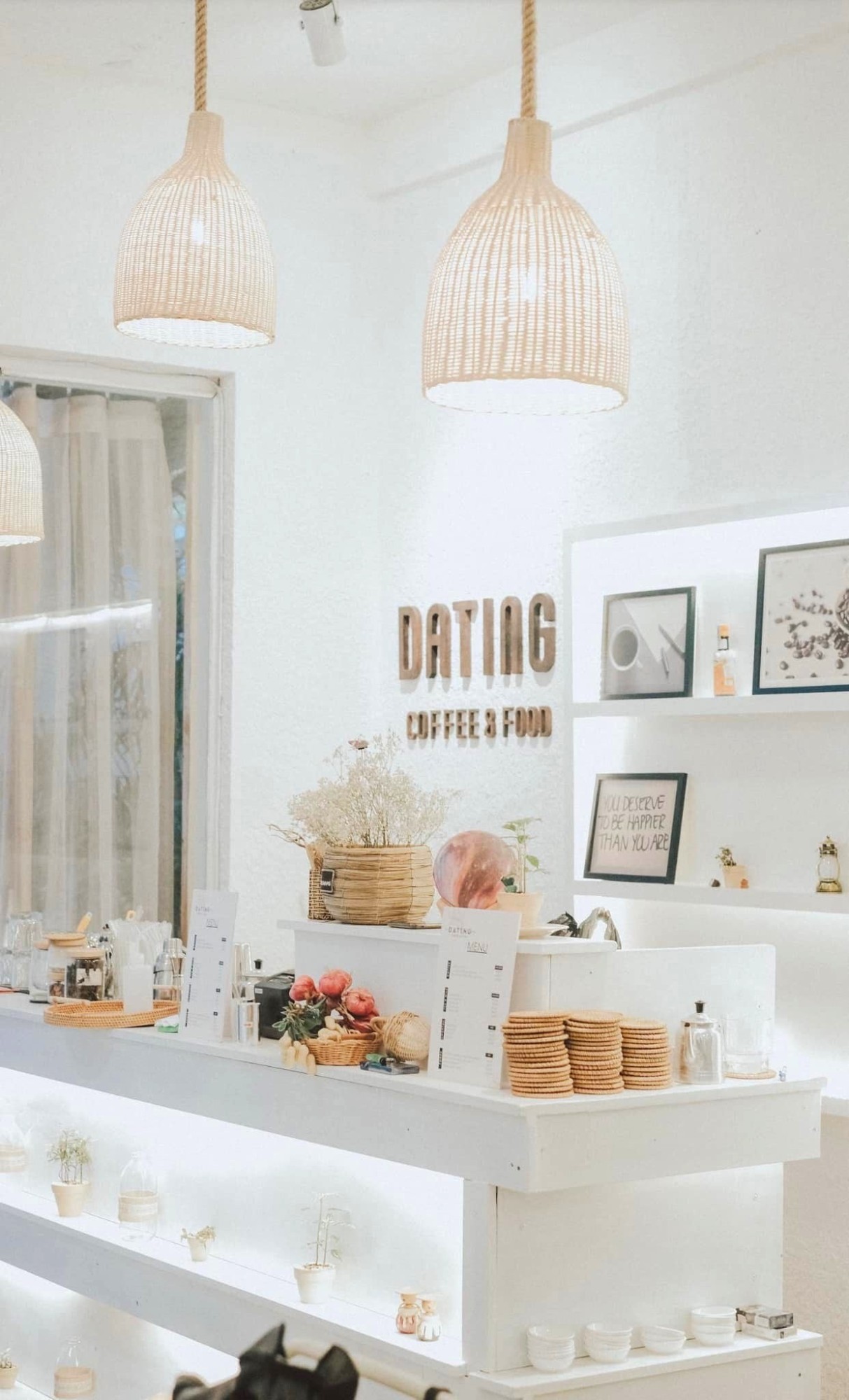 Ảnh: Dating Coffee & Food. - Không gian quán vừa đủ, khá ấm cúng. Mỗi góc bàn ghế gỗ, sofa đều được trang trí tinh tế, lạ mắt. Quán cũng có kệ sách. Toàn cảnh nơi đây chưa có nhiều cây xanh.