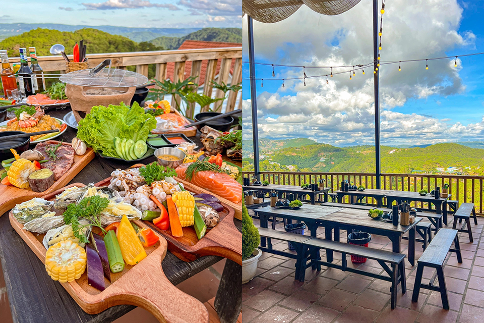 - Tầng một có khu vực nướng trong nhà cùng các phòng riêng, thuận tiện cho mọi người vừa ăn đồ nướng vừa ngắm thung lũng rừng thông. Tầng hai là không gian nướng ngoài trời với view ngắm mây.