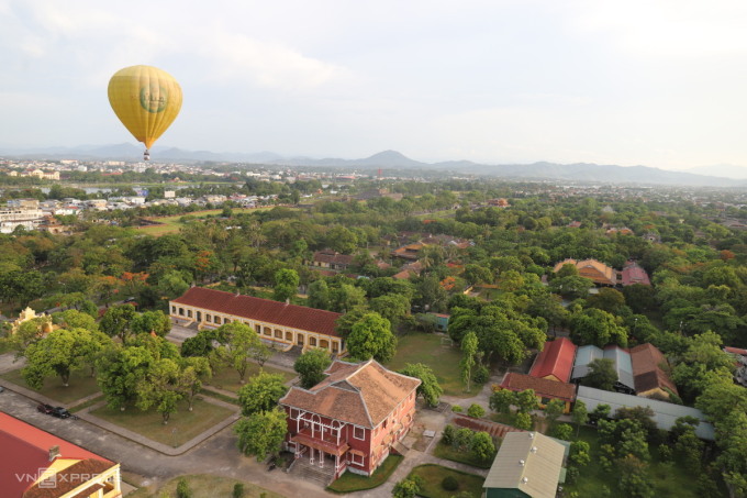 Huế nhìn từ trên cao. Ảnh: Võ Thạnh "Nếu chưa biết bắt đầu từ đâu, bạn có thể đặt tour. Hướng dẫn viên sẽ đưa bạn đến những di sản nổi bật của thành phố, nghỉ ngơi ở những nơi mang đậm phong cách Huế như Riverside Villa, hay sang trọng hơn nữa là Banyan Tree Lăng Cô", Booking gợi ý.