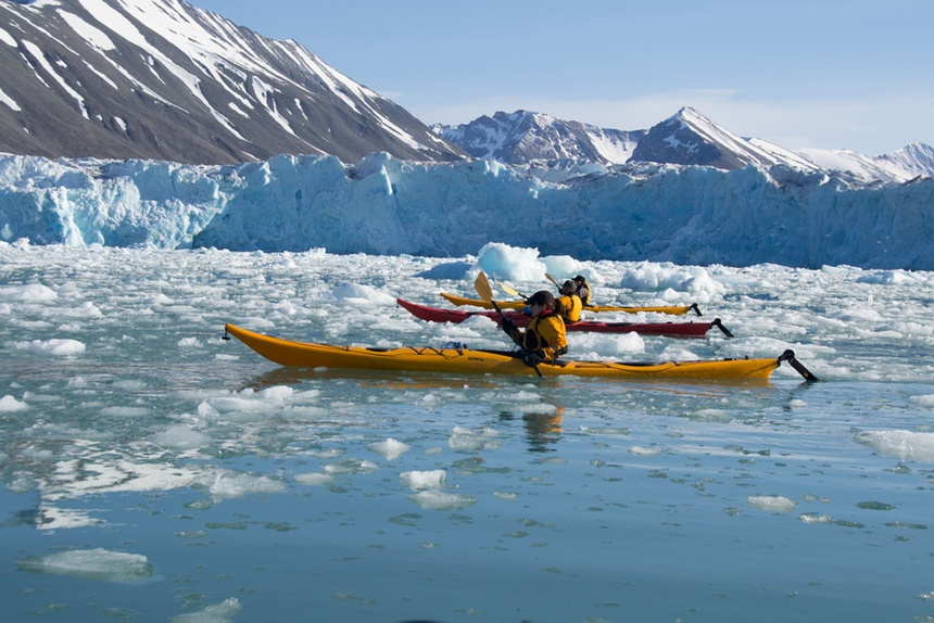 Sông băng Svalbard, Na Uy: Bạn có thể bay đến đảo Spitsbergen, thuộc quần đảo Svalbard của Vòng Bắc Cực, nhưng bạn sẽ cần lên một con tàu để đến được sông băng Svalbard chiêm ngưỡng hải cẩu mắt tròn, cá voi beluga, gấu Bắc Cực... Tại đây, du khách sẽ được tham gia cùng các nhà khoa học trong các chuyến thám hiểm đến thị trấn khai thác mỏ bị bỏ hoang Pyramiden, du ngoạn trên vịnh hẹp cực Bắc của thế giới hoặc tùy thuộc vào thời gian trong năm để đi xem Bắc cực quang hay 4 loại cá voi. Ảnh: rove.me.