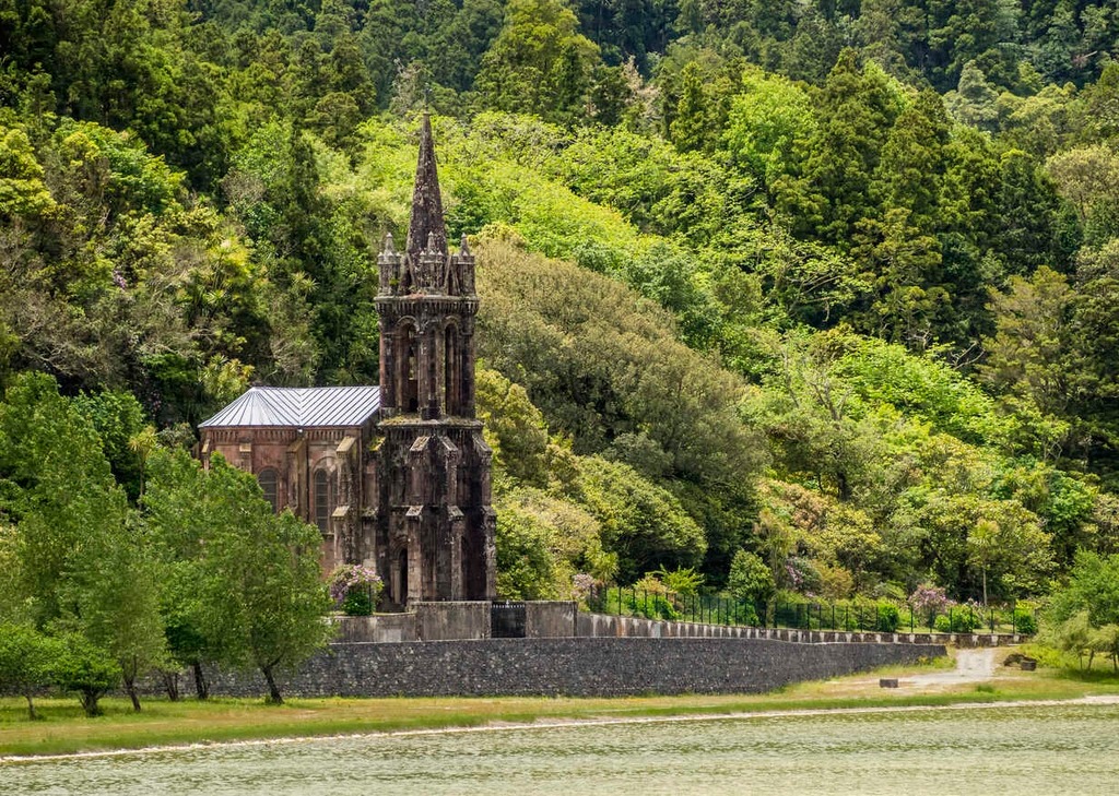 3. Nhà nguyện Nossa Senhora das Vitórias (Bồ Đào Nha): Công trình mang lối kiến trúc gothic này nằm cạnh một hồ nước yên bình ở Sao Miguel. Nhà nguyện được xây dựng từ những năm 1880, từng thuộc sở hữu của chủ đất địa phương - ông Jose Do Conto. Do Conto cho xây dựng công trình này để làm nơi chôn cất người vợ không may qua đời vì bạo bệnh. Khi Do Conto qua đời vào năm 1898, di nguyện của ông là được yên nghỉ cùng vợ trong nhà nguyện này.