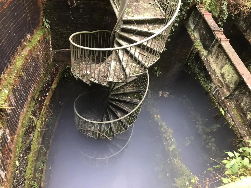 5. Bãi khai thác than tại Manchester (Anh): Điểm đặc trưng của bãi khai thác này là cầu thang xoáy- phương tiện duy nhất để di chuyển giữa các lầu. Đứng từ lầu cao của cầu thang này và nhìn xuống phía dưới là điều khó khăn khi nơi này bị phủ kín một tầng sương mù dày đặc. Du khách được khuyến cáo không nên thám hiểm vì sương mù ở đây chứa những chất độc hại còn tồn đọng. Ảnh: