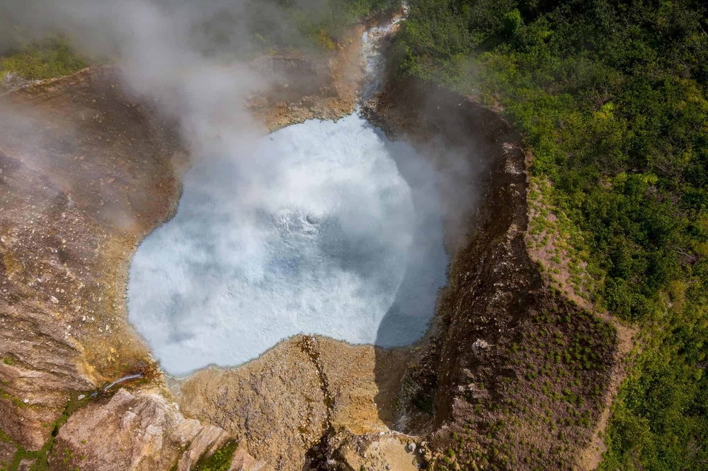 Boiling Lake, Dominica: Đúng như tên gọi, Boiling Lake (Hồ Nước sôi) ở Dominica là một hồ nước sôi liên tục. Nước ở khu vực ngoài rìa của hồ cũng lên đến 70-90 độ C. Lý do nước trong hồ luôn có nhiệt độ cao và sôi là do vị trí gần núi lửa đang hoạt động. Ảnh: Just go Dominica.