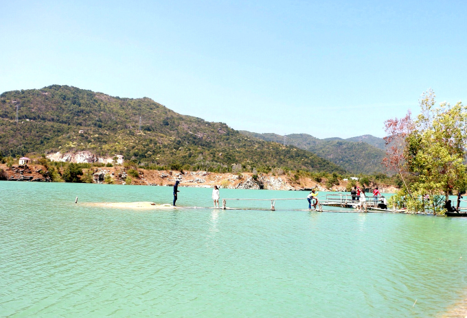 Hồ nước xanh mát và bình yên cho bạn thỏa thích sở hữu nhiều bức ảnh đẹp. Ảnh: Khánh Thiện Nằm gần sườn núi Dinh, huyện Tân Thành, hồ đá xanh được bao quanh bởi đồi núi, tạo một khung cảnh xanh mát và bình yên, là một trong những điểm du lịch hút khách gần đây.