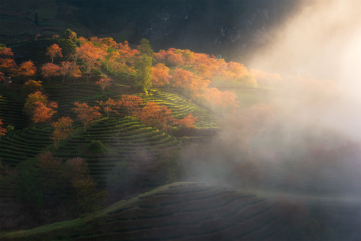 Đồi chè Mộc Châu còn là niềm cảm hứng bất tận cho các tay máy và dân du lịch. "May mắn khi đến nơi gặp thời tiết đẹp lúc bình minh, bên dưới đồi chè là những làn sương như lụa. Tôi cùng nhiều bạn bè nhiếp ảnh ba miền bị choáng ngợp trong khoảnh khắc ấy", Trần Linh chia sẻ.