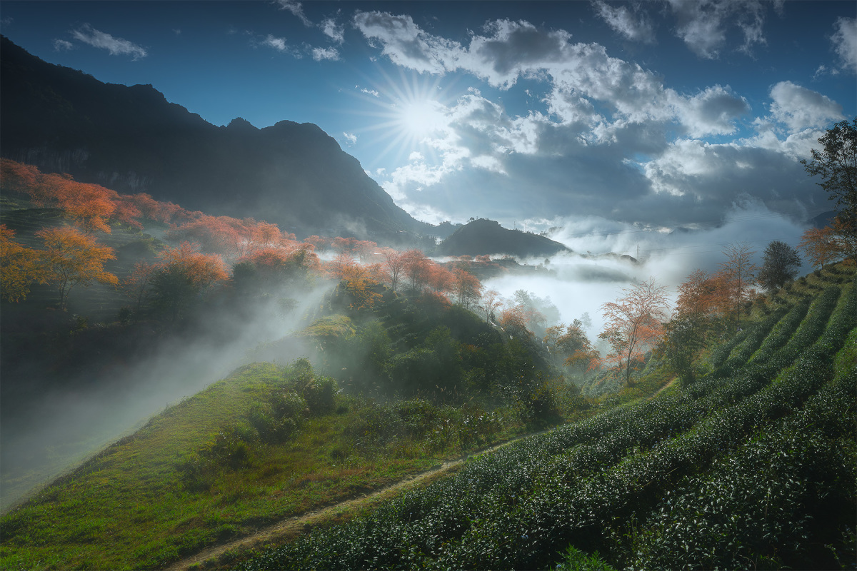 Các đồi chè Long Cốc (Phú Thọ), Mộc Châu (Sơn La) và Ô Long (Lào Cai) đang vào mùa săn sương và mây đẹp nhất.