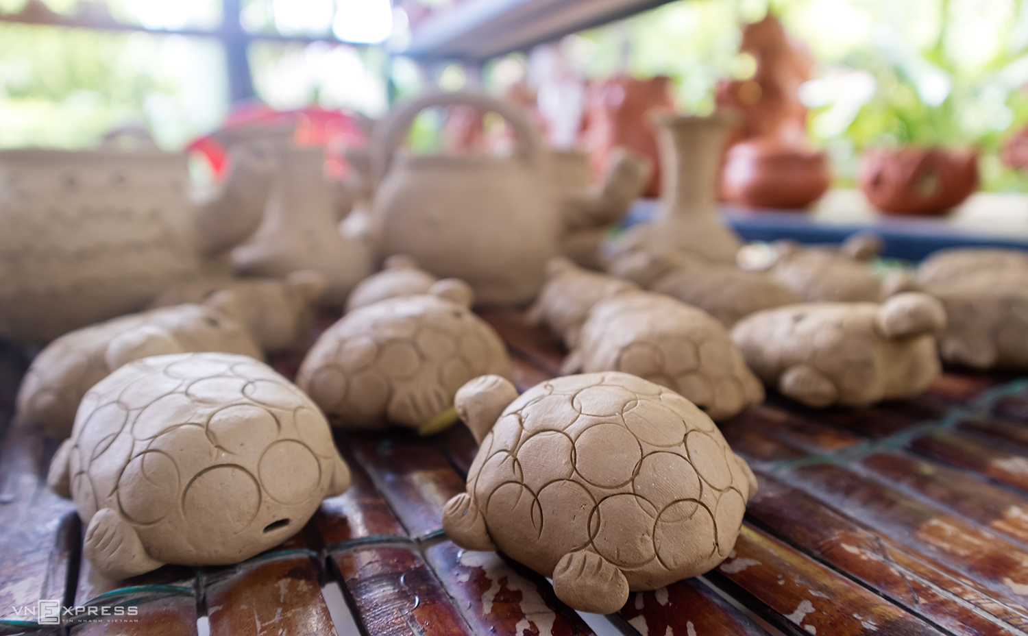 Ghé thăm làng vào một buổi trưa hè, du khách sẽ không khó để bắt gặp những vật phẩm gốm thô nằm phơi nắng trong sân. Sản phẩm của làng có hai dòng chính là gốm sành nâu (được nung với lửa có mức nhiệt từ 800 đến 1.000 độ C) và gốm đỏ (mức nhiệt dưới 300 độ C).