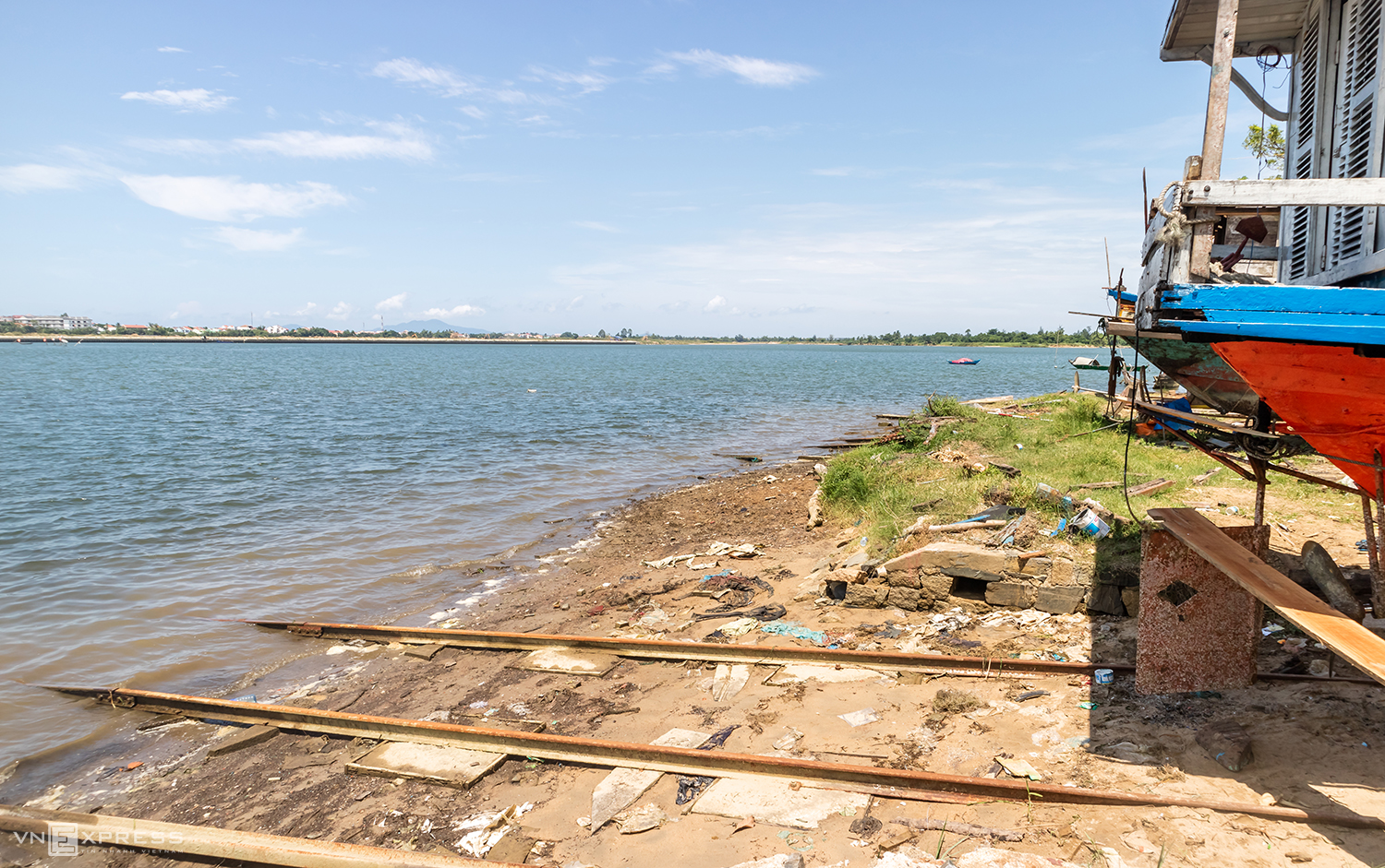 Một trải nghiệm đáng thử ở làng Kim Bồng là dạo quanh khu vực ven sông, chứng kiến những con tàu được kéo lên bờ bằng hệ thống ròng rọc và đường ray, tận hưởng gió trời và nhìn ngắm Hội An từ bên này sông.
