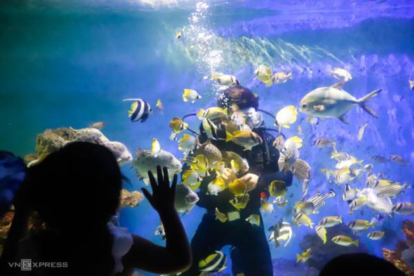 Du khách đến Viện Hải dương học có dịp trải nghiệm cảnh thợ lặn xuống dưới các bể kính biểu diễn cùng các loài cá. Những người này phần lớn là các kỹ thuật viên tại viện, đảm nhận luôn công việc nghiên cứu, theo dõi các loài sinh vật tại bể.