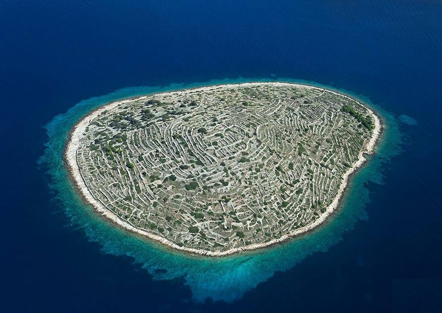 Hòn đảo "dấu vân tay" Baljenac Hòn đảo Baljenac hình bầu dục được bao phủ bởi một hệ thống tường đá nối dài 23 km. Ban đầu chắc hẳn bạn sẽ nghĩ đó là một mê cung được xây dựng vào thời cổ đại, nhưng thực tế các bức tường cao đến thắt lưng này được những người nông dân thiết kế để giúp cho hoạt động canh tác trong nông nghiệp trở nên dễ dàng hơn.