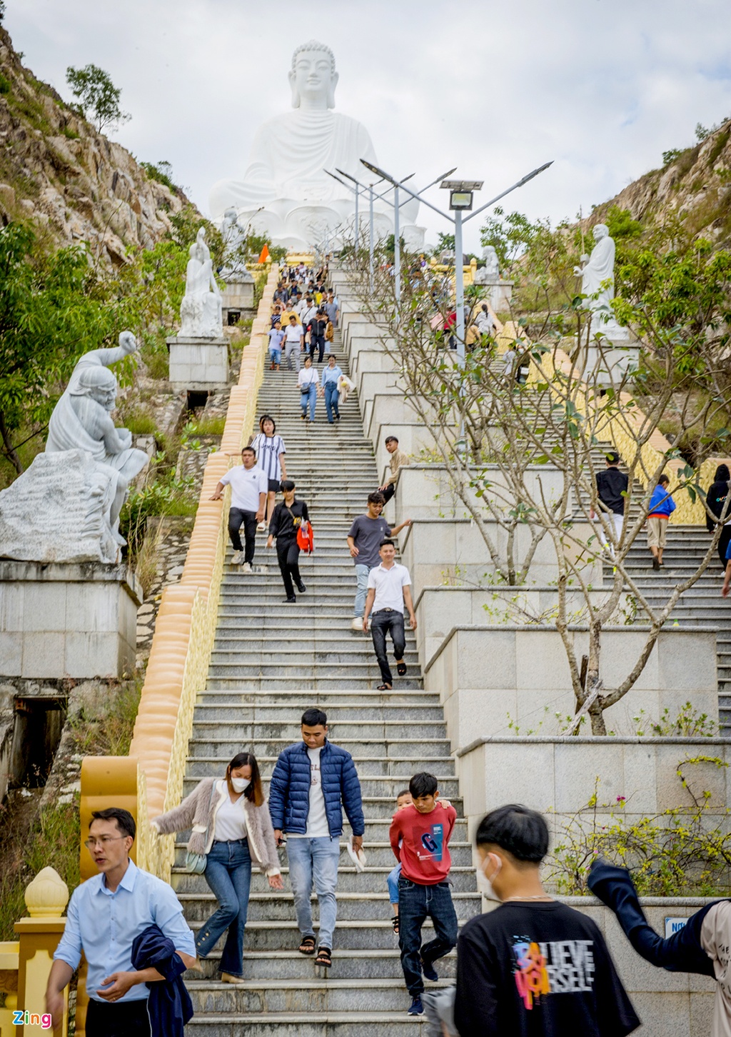 Du khách chiêm bái 1.438 tượng phật ở thư viện phật giáo nơi đây. "Hàng năm, lễ hội chùa Ông Núi diễn ra từ ngày 24 đến 25 tháng Giêng âm lịch nhưng vào các ngày lễ, Tết hoặc ngày rằm hàng tháng, hàng nghìn người dân và du khách đều về đây dâng hương, hoa quả cầu may mắn, bình an và chiêm ngưỡng tượng Phật", phật tử Như Hằng (ngụ huyện Phù Cát, tỉnh Bình Định) nói.
