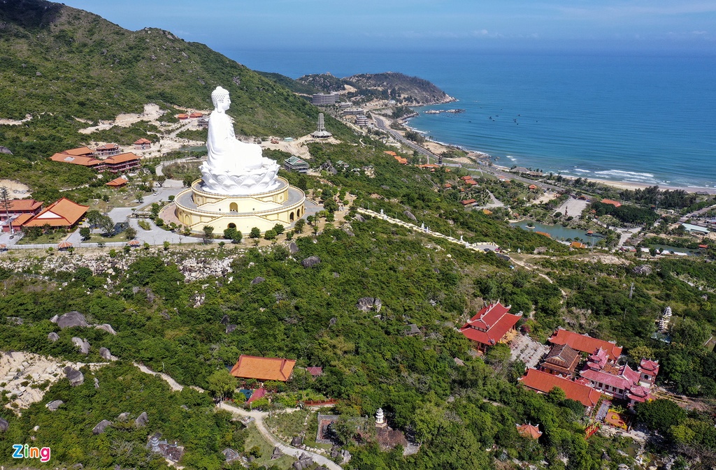 Tượng phật Thích Ca cao 69 m trên đỉnh Chóp Vung bên tuyến đường ven biển ở huyện Phù Cát (Bình Định) thu hút hàng chục nghìn du khách đến tham quan, chiêm ngưỡng mỗi năm.