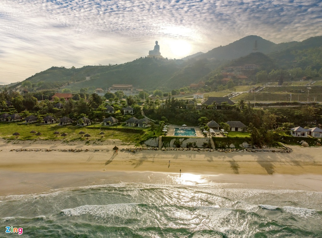 Hàng ngày, khi hoàng hôn buông xuống, tượng Phật Thích Ca sừng sững giữa núi non và biển cả tạo nên không gian tĩnh lặng, thanh bình.