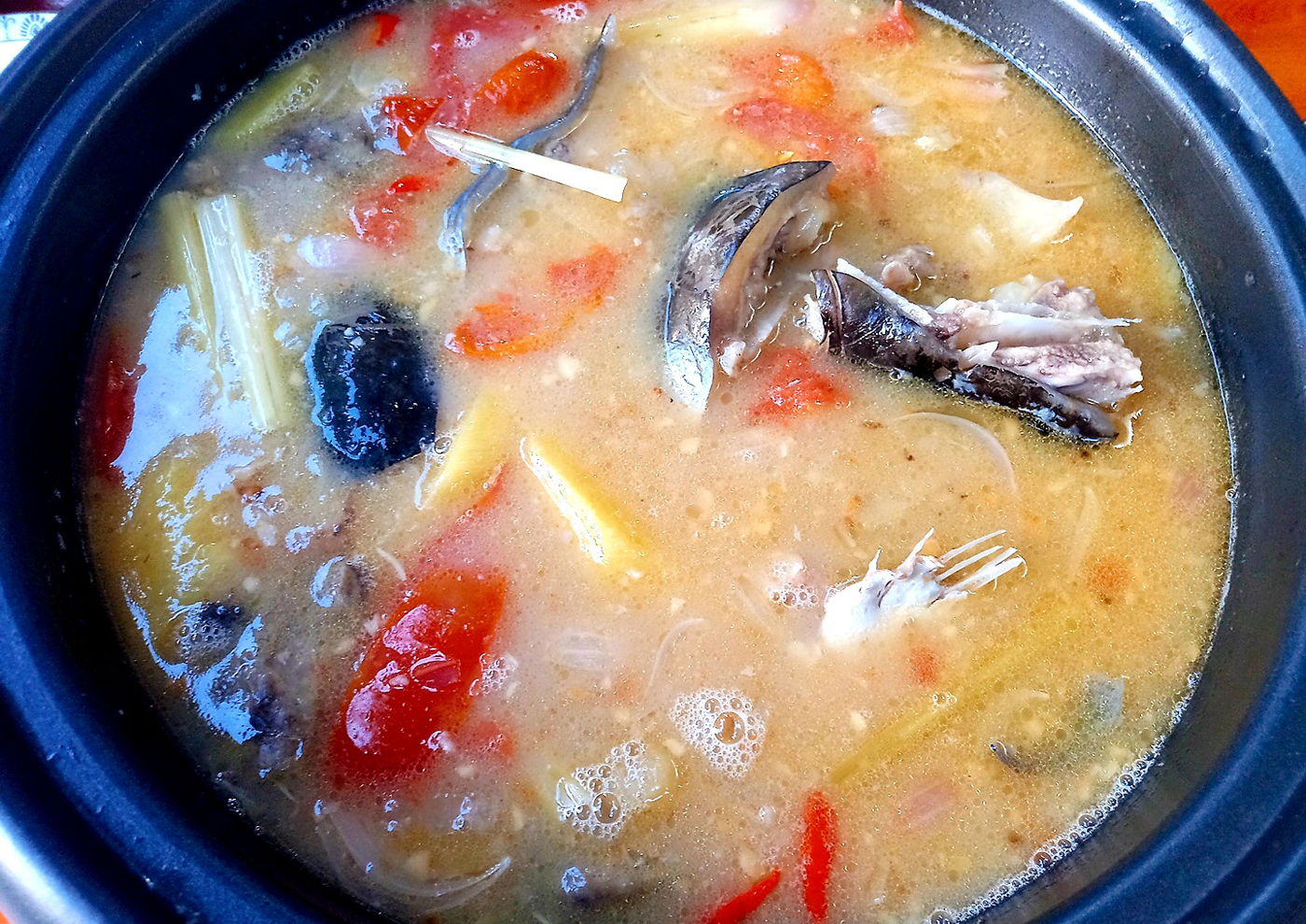 Món lẩu có vị ngọt chua từ mẻ kết hợp cá tra nhúng chín mềm, thịt dai ngọt và béo, ăn kèm nhiều loại rau.