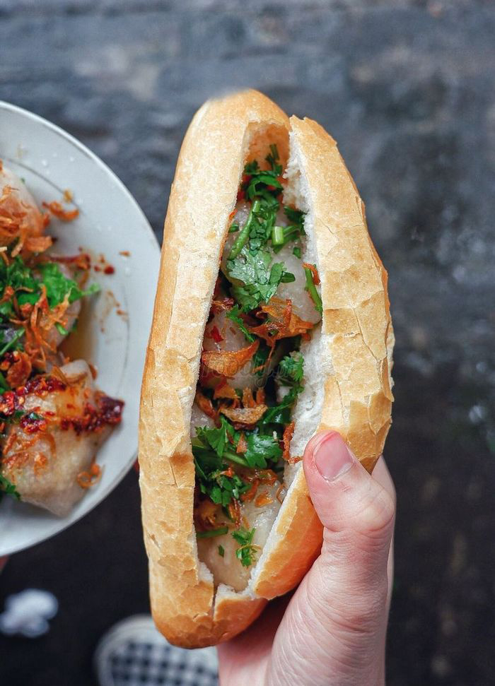 Bạn có thể thưởng thức bánh mì bột lọc trứ danh Huế ở phố đi bộ Nguyễn Đình Chiểu