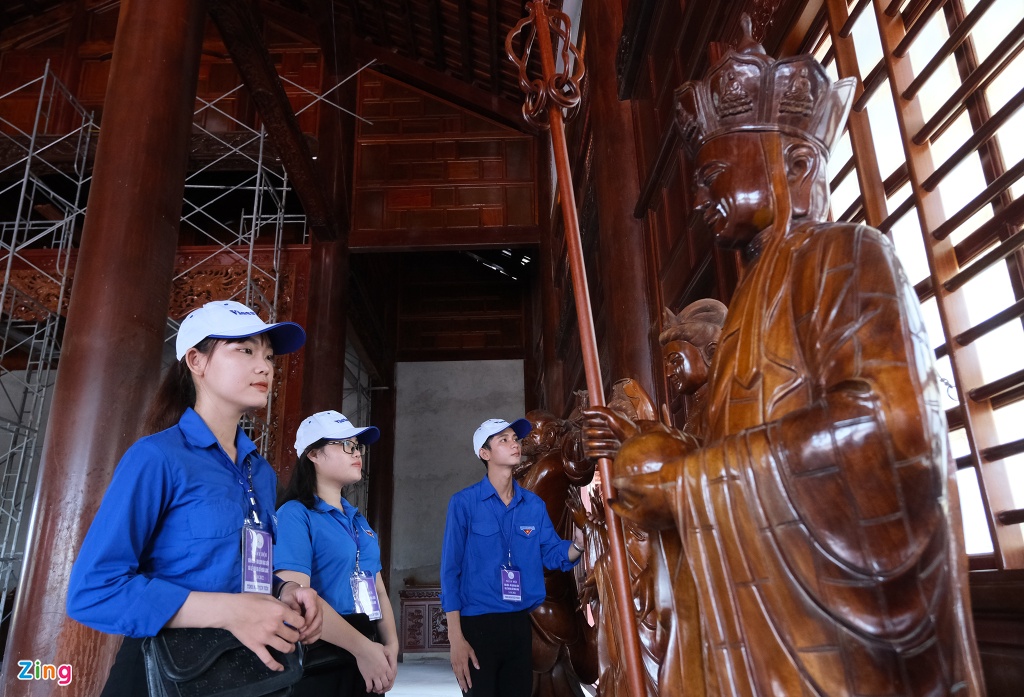 Nhiều chi tiết hoa văn tượng hình linh vật được chạm trổ tỉ mỉ trên các bức vách.
