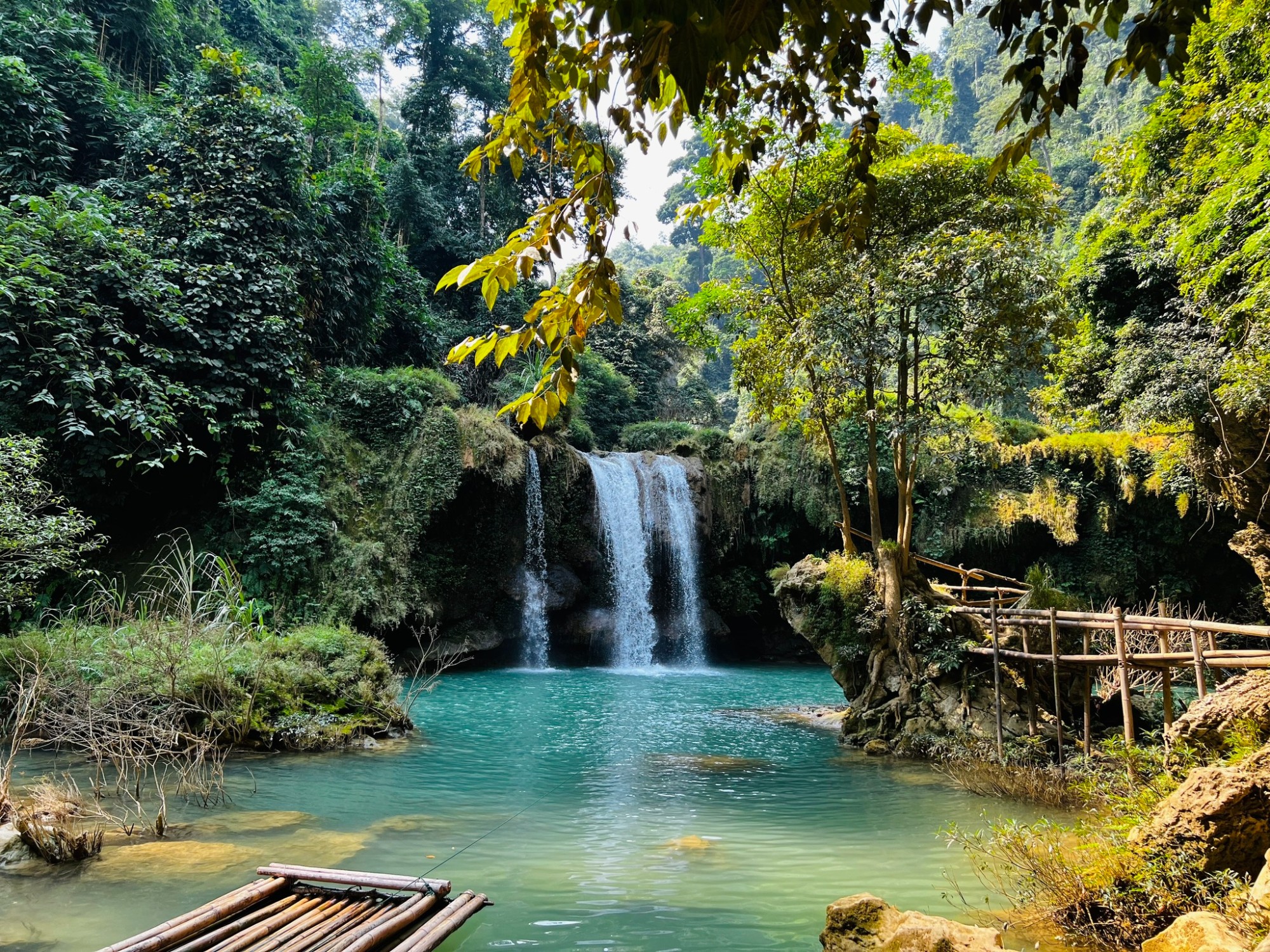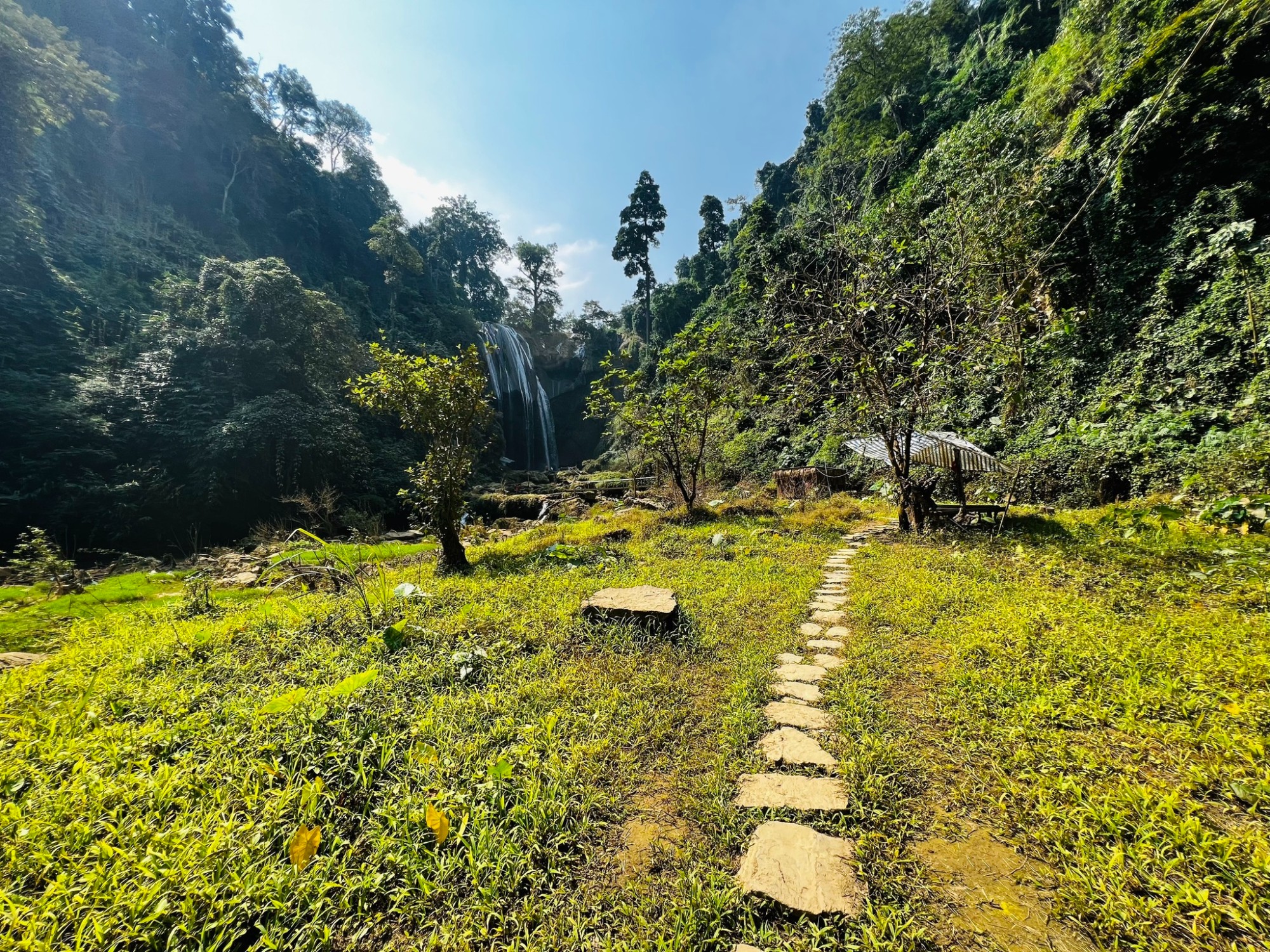 Đi qua đoạn cầu gỗ, rừng mở rộng ra một vùng thoáng đãng và trong tầm mắt các bạn chính là ngọn thác