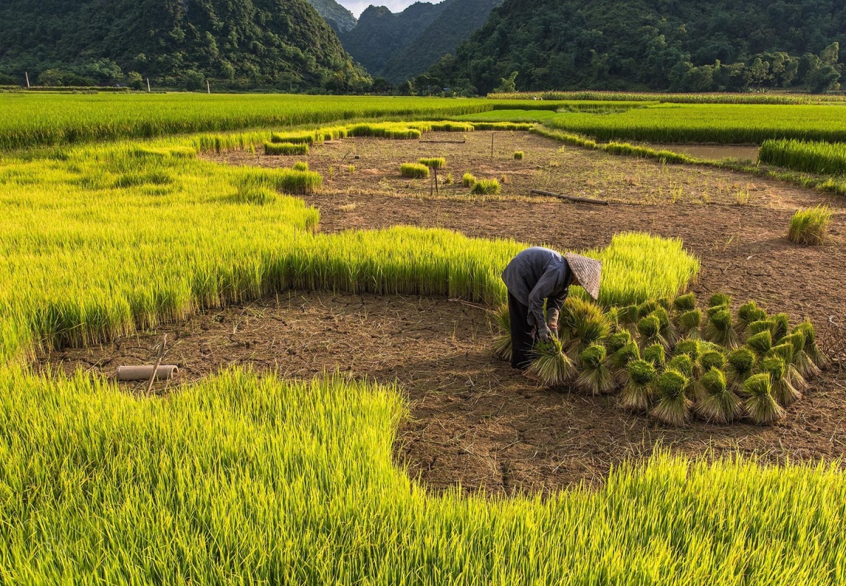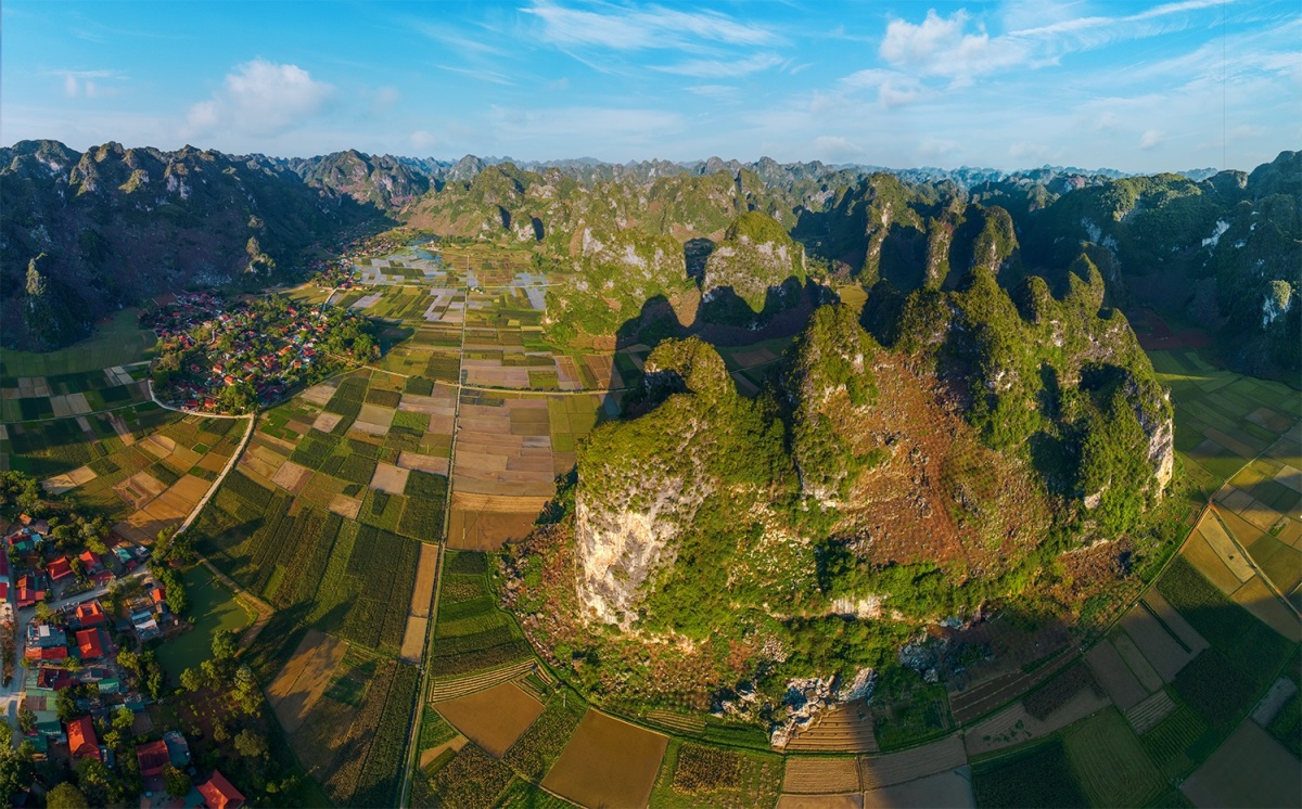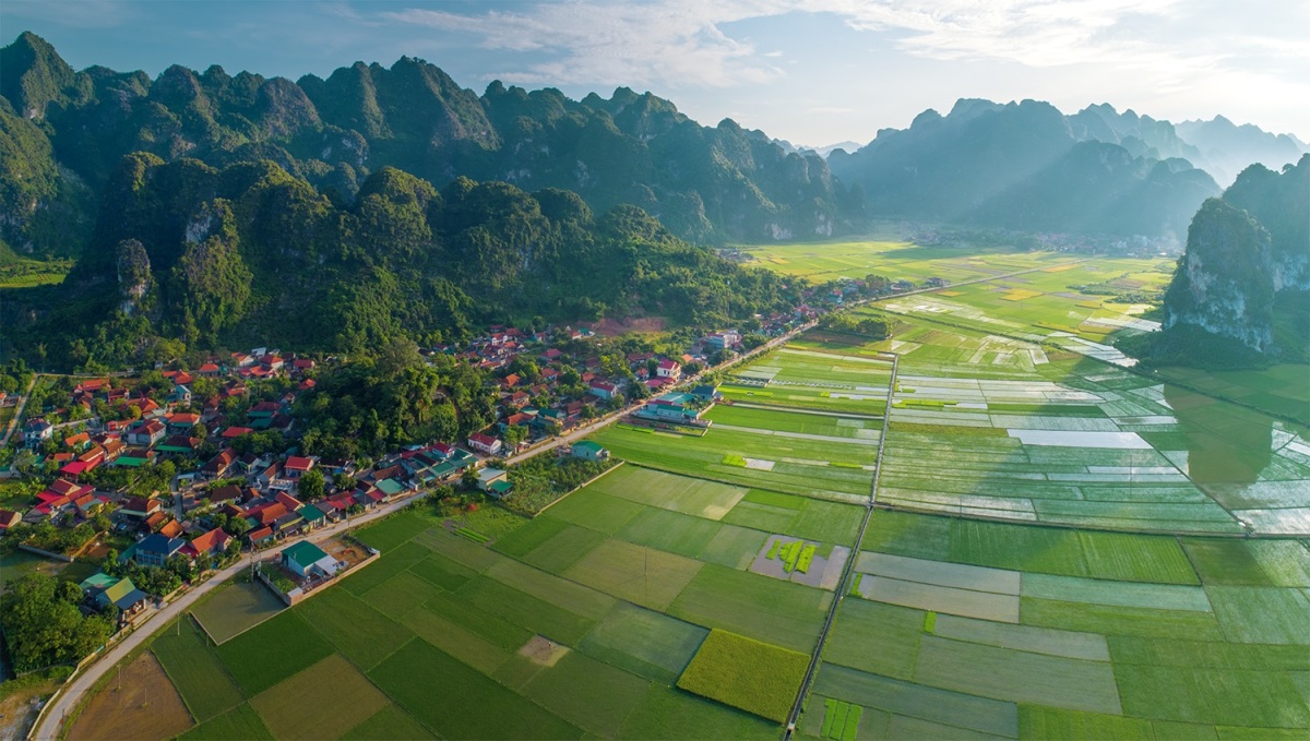 Núi non trùng điệp bao quanh thung lũng, cụm dân cư và nhịp sống mùa cấy ở xã vùng cao huyện Hữu Lũng gây ấn tượng du khách.