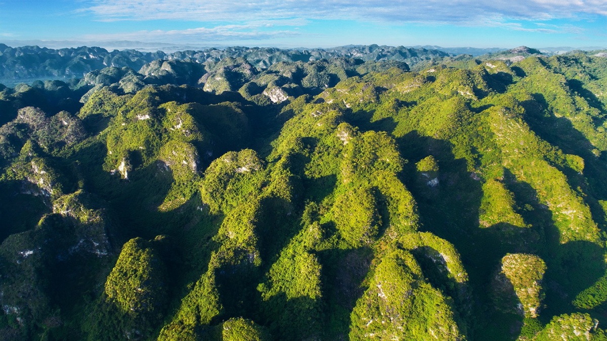 Qua góc chụp trên cao, quan sát được toàn cảnh nắng sớm soi rọi trên các ngọn núi nhấp nhô, khiến du khách cứ ngỡ như lạc vào nơi tiên cảnh.