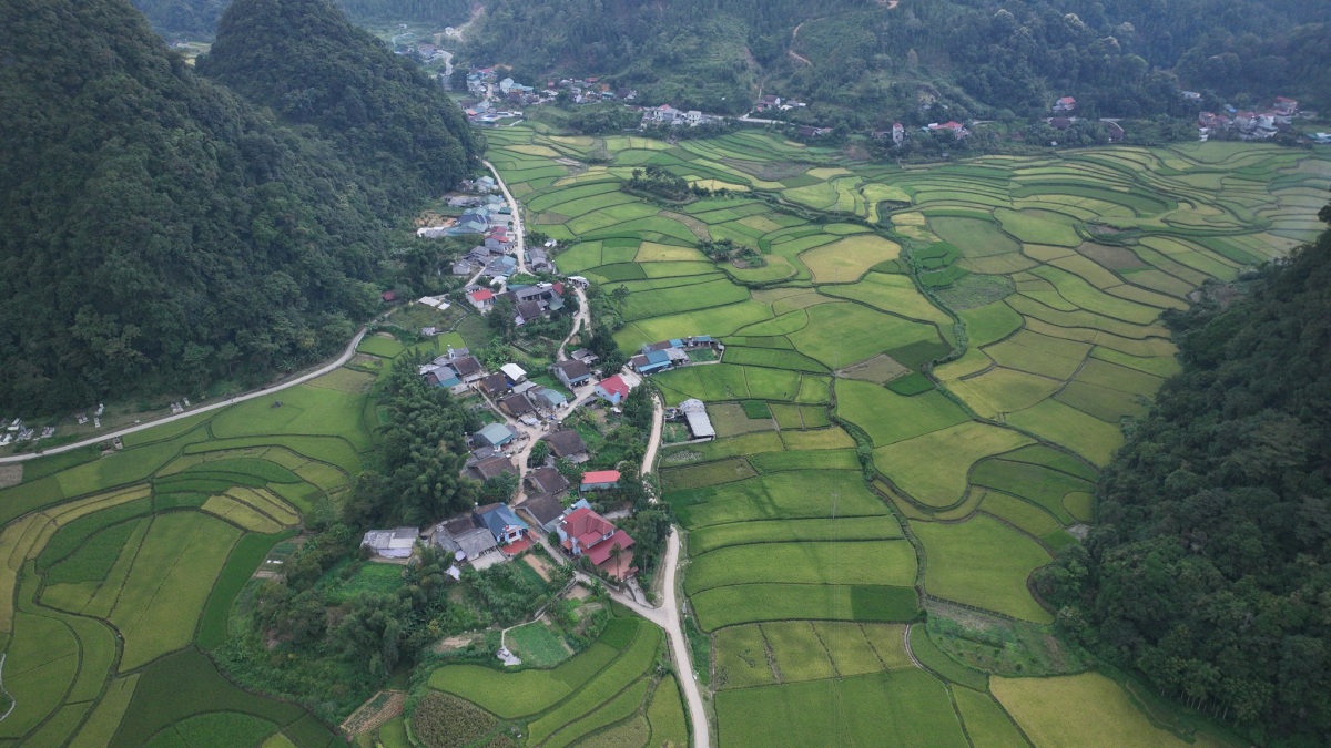 Mùa thu Bảo Lạc cũng là lúc lúa bắt đầu chín, ấn tượng với những thửa ruộng bậc thang xếp tầng ở xã Hưng Đạo.