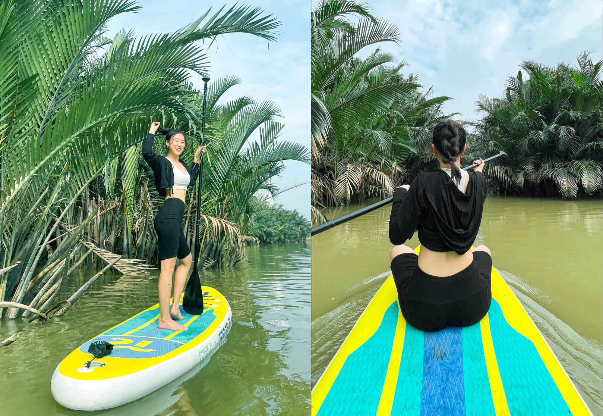 Chèo SUP mang đến nhiều trải nghiệm lý thú cho Phương Trinh. Ảnh: Riri Phương Trinh. Riri Phương Trinh (25 tuổi), người thường xuyên tham gia chèo SUP, cho biết những hoạt động ngoài trời gần gũi với thiên nhiên, sông nước được nhiều người quan tâm vào mùa hè, trong đó có chèo SUP.