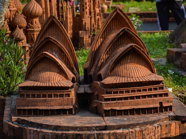 Đấu trường La Mã ở thành phố Roma, nước Ý Theo anh Nam, công trình thế giới thu nhỏ làm bằng gốm được tạo nên bởi bàn tay khéo léo, điêu luyện của các nghệ nhân có dày dặn kinh nghiệm. Ông Lê Ngọc Tuấn, nghệ nhân nổi tiếng ở làng gốm Thanh Hà, đã chế tác nhiều công trình thu nhỏ từ bàn tay "ma thuật" của mình.
