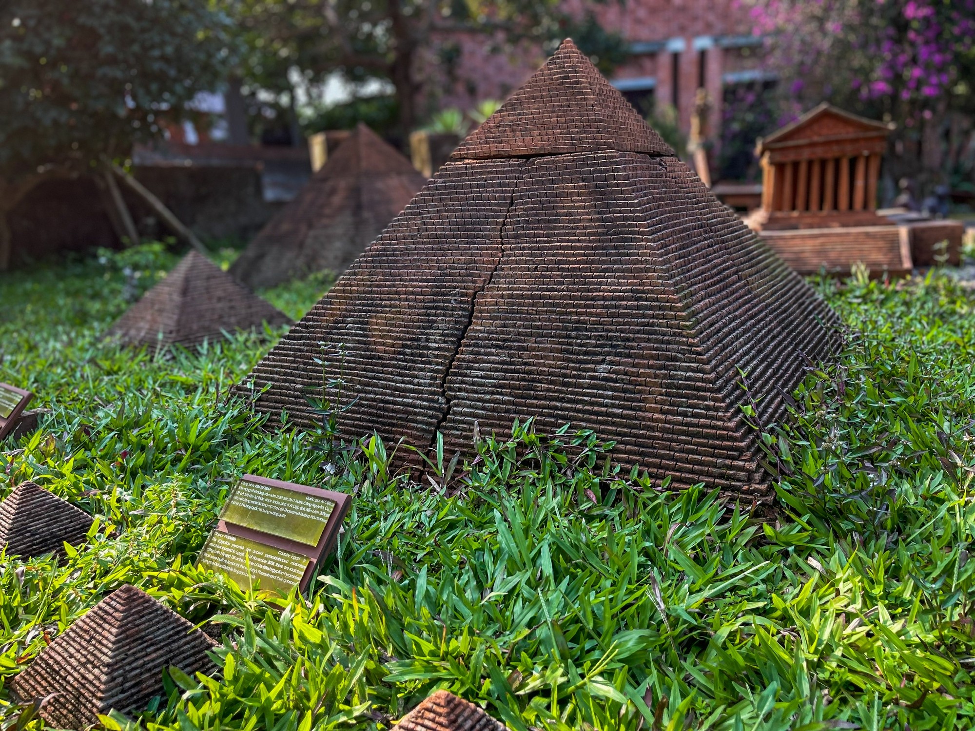 Kim tự tháp Ai CậpBên cạnh đó, ngoài các kỳ quan của thế giới, khu trưng bày còn có 11 danh lam thắng cảnh của Việt Nam, như phố cổ Hội An, chùa Cầu...