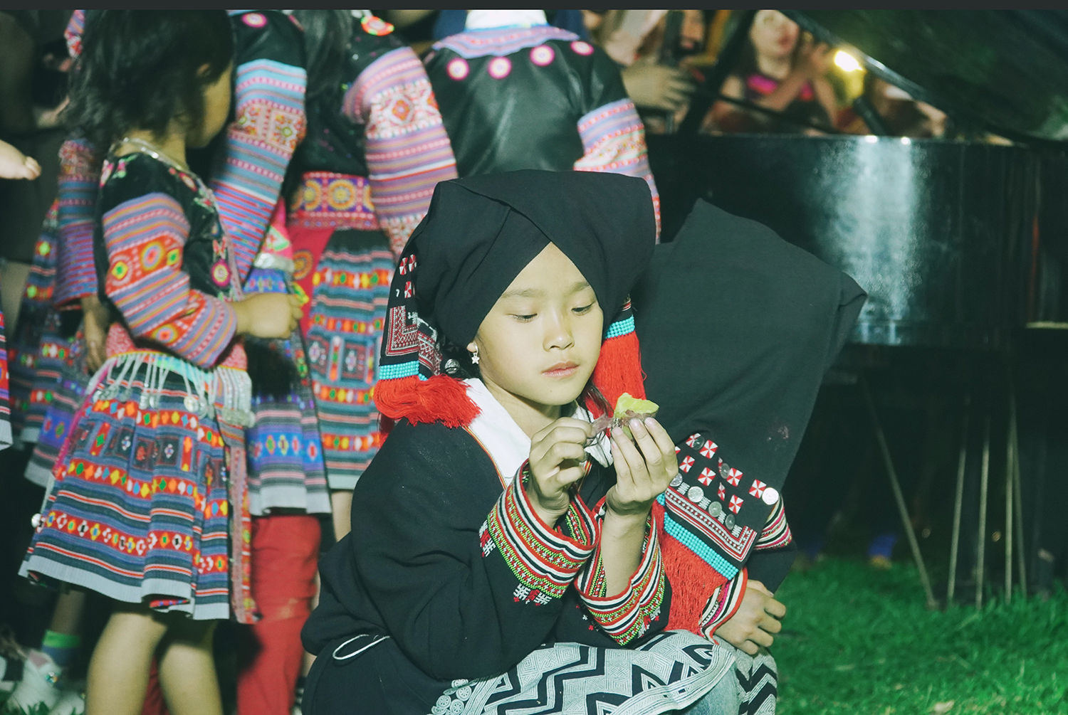 Khi mặt trời lặn, du khách nghe bà con dân tộc biểu diễn văn nghệ, thưởng thức đồ nướng ngay tại chỗ, chụp ảnh cùng trẻ em vùng cao...