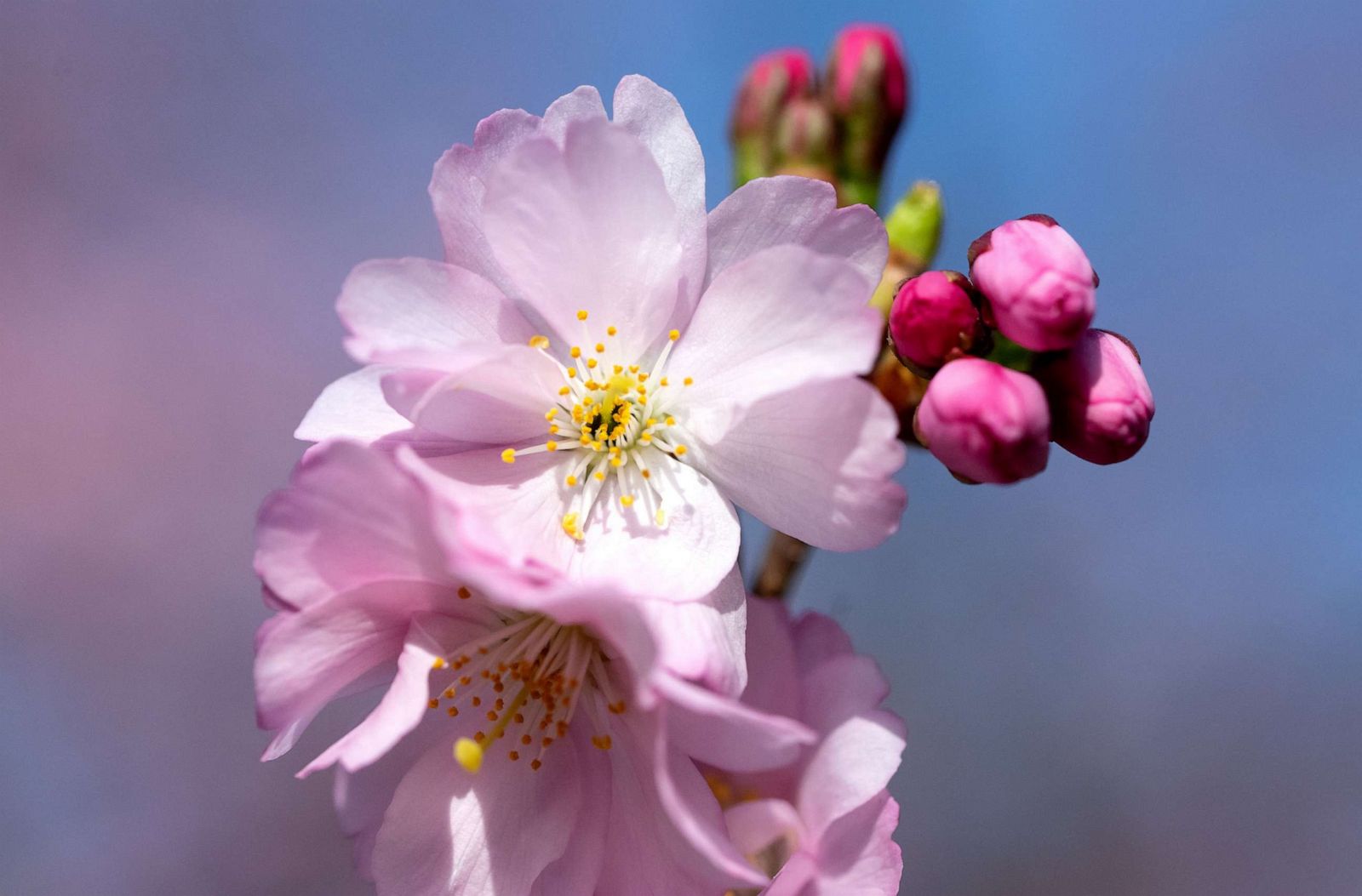 Hoa anh đào nở rộ trong Công viên Olympic ở Munich (Đức) dịp Xuân 2023