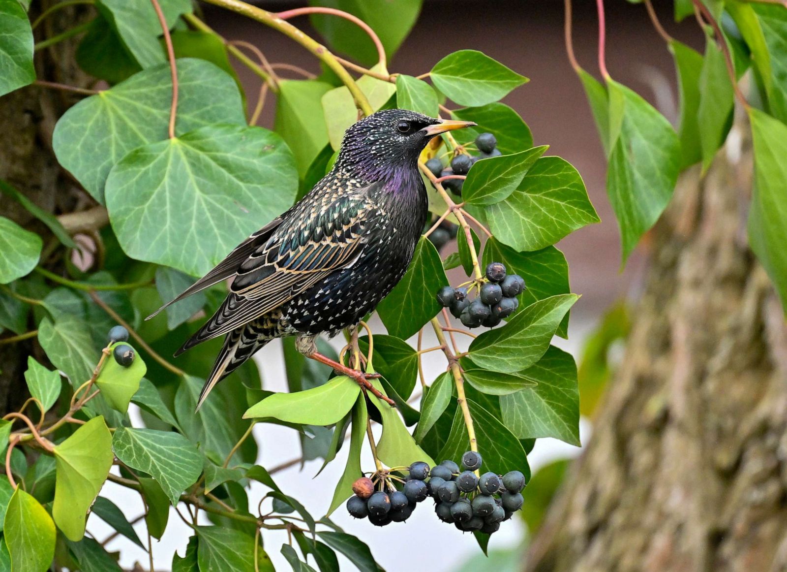 Một con sáo đậu trên cành cây trong sắc Xuân ở Brandenburg, Đức