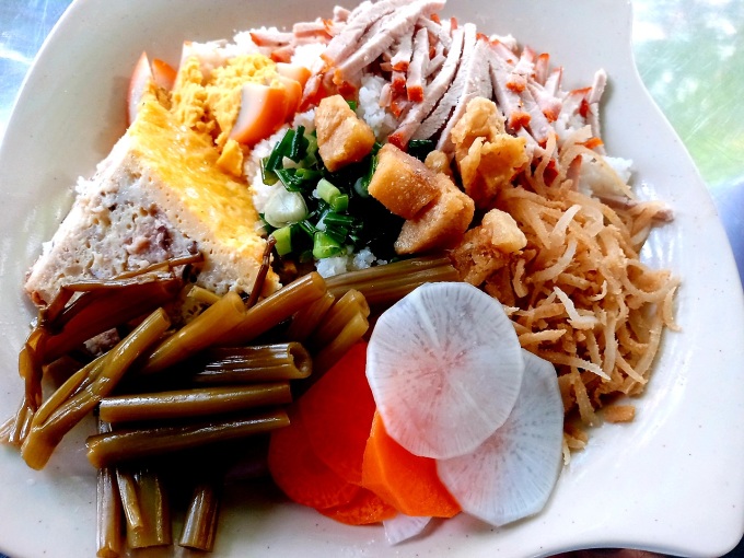 Ngoài thịt, người Long Xuyên dùng còn trứng kho thấm gia vị để thái từng lát mỏng. Theo chủ quán, cách này giúp người ăn không có cảm giác ngấy. Còn chả trứng sẽ được chưng chín sẵn và thái thành lát khi có khách gọi món.