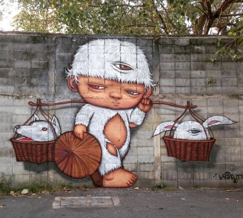 Cùng với sự tái tạo của các tòa nhà, nghệ thuật đường phố cũng phát triển ở Charoenkrung. Vào năm 2017, nghệ sĩ Vhils đã được giao nhiệm vụ khắc họa tình hữu nghị giữa Thái Lan và Bồ Đào Nha trên các bức tường của đại sứ quán quốc gia này. Gần đó là tranh vẽ Thần Tài Trung Quốc của một họa sĩ Thái Lan khác.