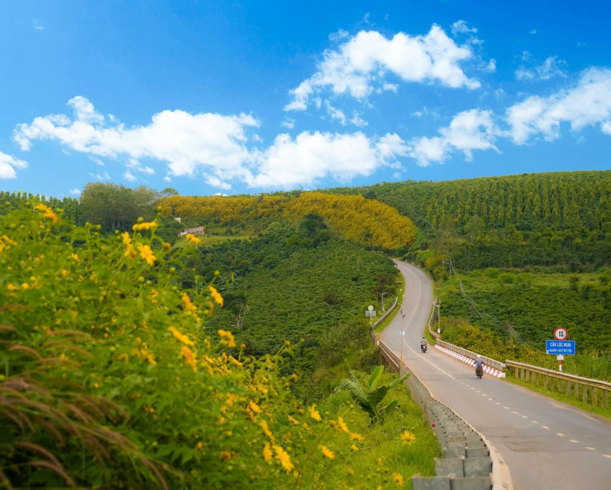 Tỉnh lộ 725, cung đường từ phía Nam lên Đà Lạt, rực rỡ sắc vàng của hoa dã quỳ những ngày cuối tháng 11.