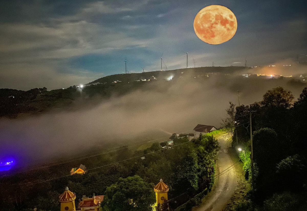 Theo Nhân, nếu du khách bỏ lỡ thời điểm để chụp mây vào sáng sớm, bạn có thể săn... sương đêm Đà Lạt. Trên ảnh là bức hình Nhân chụp ngay trước hiên nhà vào đêm 10/9, cũng là trung thu.