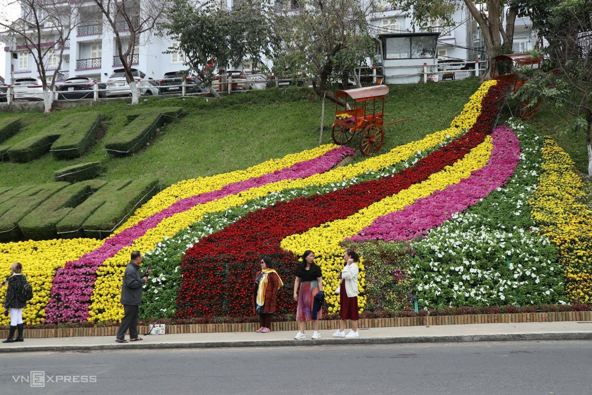 Ở ven hồ Xuân Hương, nhiều tiểu cảnh hoa được TP Đà Lạt đầu tư. "Hai năm rồi do dịch Covid-19 nên tôi không đến Đà Lạt, lần này ghé đúng dịp lễ hội hoa nên thấy rất thích với các không gian hoa ở đường phố, ven hồ", chị Trần Thị Thùy Dung, du khách đến từ Hà Nội, cho biết.