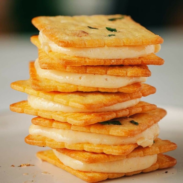 Hành trình tìm kiếm câu trả lời Đài Loan có gì ngon sẽ đưa bạn đến với món bánh hành kẹp bơ sữa. Một loại bánh có vẻ ngoài gần giống bánh quy nhưng lại có hương vị đặc trưng, khó nhầm lẫn. Những chiếc bánh quy sẽ được mang đi tẩm hành rồi nướng chín để có mùi thơm kích thích khứu giác. Sau đó, thợ làm bánh sẽ lấy hai chiếc bánh để kẹp lấy phần nhân bơ sữa, mang đến sự kết hợp hoàn hảo. Độ giòn rụm của vỏ bánh cộng hưởng với vị bơ sữa tan chảy đã chinh phục được những thực khách khó tính nhất.