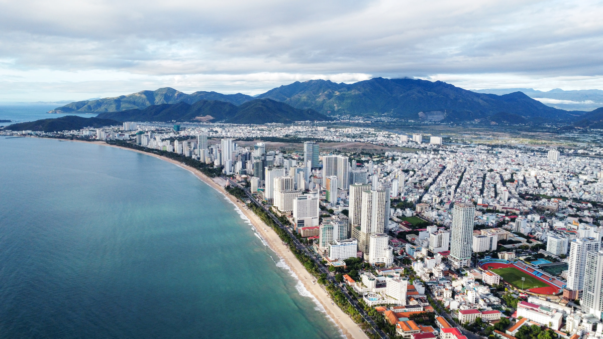 TP Nha Trang, tỉnh Khánh Hòa nhìn từ trên cao nổi bật với đường bờ biển dài, các tòa nhà khách sạn cao tầng đều nhau ven đường Trần Phú. Theo Dũng, anh ấn tượng với thành phố bởi nét yên bình, ẩm thực địa phương đa dạng và hấp dẫn.